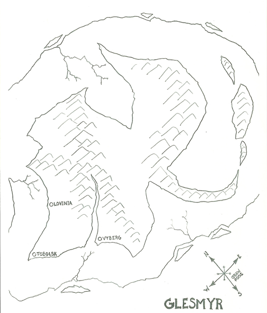 Few people venture to the frozen lands of Glesmyr. Situated beyond the reach of the sun, the days are bitter cold and the nights are capable of freezing men solid in minutes. The folk who live there cope with the relentless chill and the creeping ice as best they can, carving homes out of volcanoes and bundling up in furs to survive. Little awaits visitors in the way of welcome or wealth in a land where survival itself is a luxury few can afford.